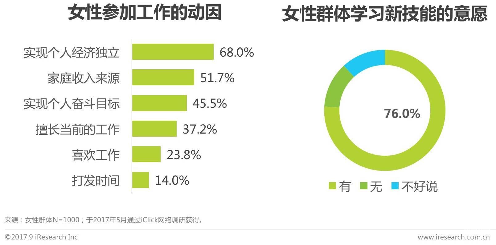 看看这个调查表:2017年68%的女性在谈到工作原因时,是要实现经济独立的,而在19年的今天,这个数字肯定是不断上涨的。